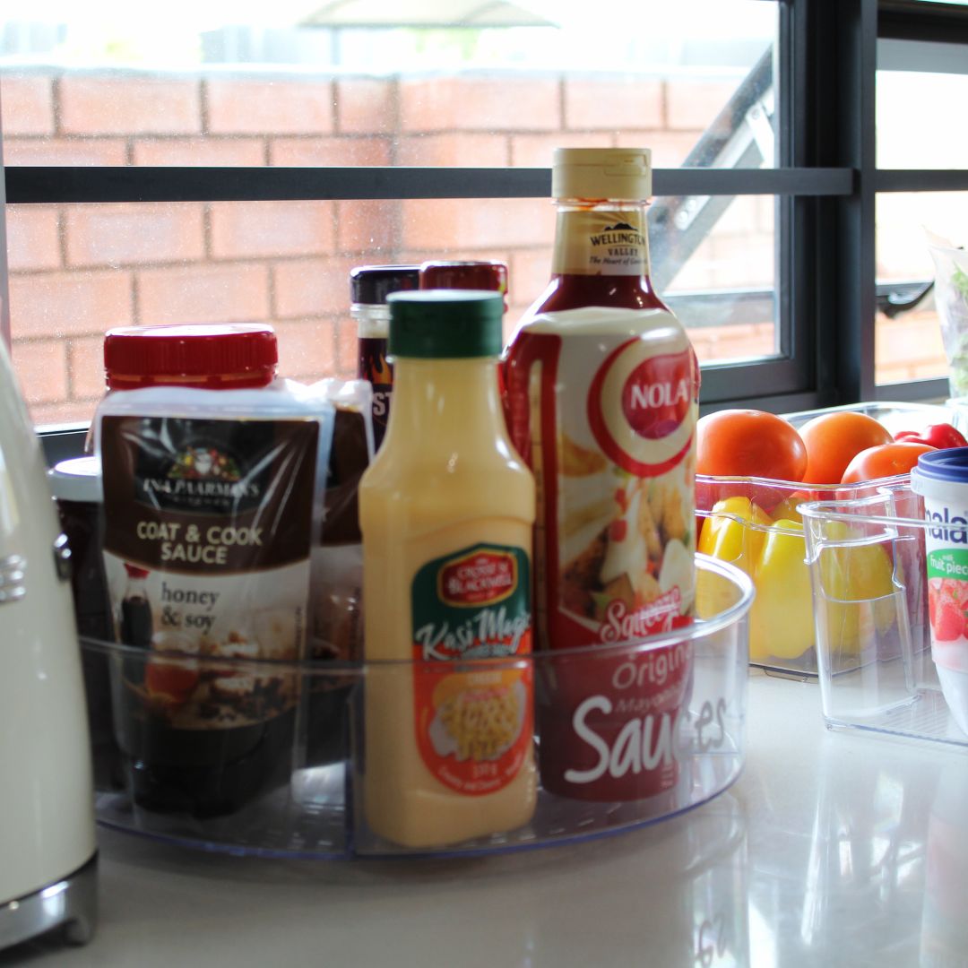 Clear turntables trays to organise your sauces